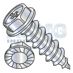 6-20X2 Phillips Indent Hexwasher Serrated Self Tap Screw Type AB Full Thread Zinc Bake