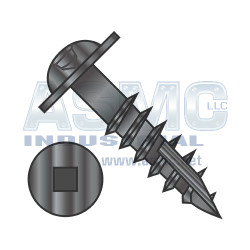 8X3 Square Drive Round Washer Head Deep Thread Type 17 Wood Screw 2/3 Thrd Black Ox