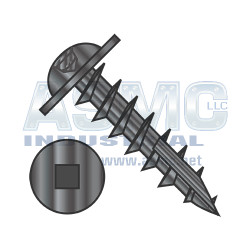8X3/4 Square Drive Round Washer Head Deep Thread Wood Screw Type 17 Full Thrd Black Ox